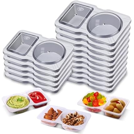 15 Sets Snack Containers, Reusable Double Compartment Condiment With Lids 2 Portion Snack Containers Sauces Dip, Disposable Box to Grab and Go with Prep For Adults, On The Go For Kids
