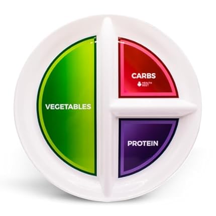 Health Beet 10” Diabetic Portion Control Plate for Balanced Eating -3 Divided Sections for Veggies Carbs & Protein – Microwave & Dishwasher Safe Bariatric Sectioned Plates for Adults & Kids – 1 Pack