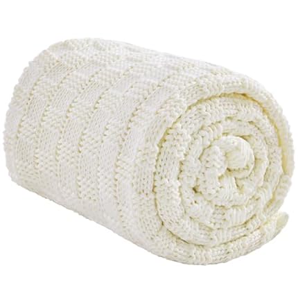 Knitted Weighted Blanket for Adult, No Beads Heavy Blanket 48” x 72” 12lbs, Breathable Chunky Knit Blanket, Cooling Weighted Blanket for Hot Sleepers, Christmas Home Decor (Ivory White)