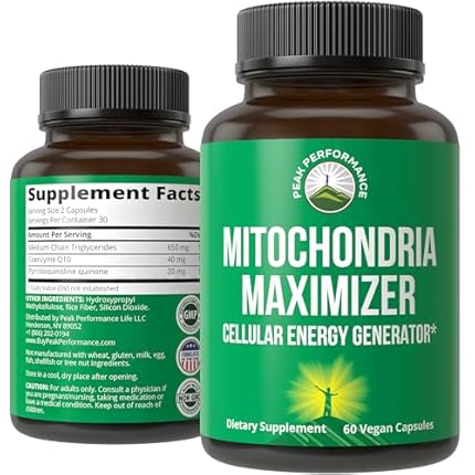 Mitochondria Maximizer with CoQ10 and Active PQQ. Best Mitochondrial Support Supplement with MCT Oil. Natural Cellular Generator for Clean, Focused Energy 60 Vegetarian Capsules