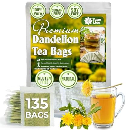 Tagalica, Premium 135 Dandelion Root Tea Bags, 100% Natural & Pure from Dandelion Root, Eco-Conscious Tea Bags, Herbal Tea. No Sugar, No Caffeine, No Gluten, Vegan