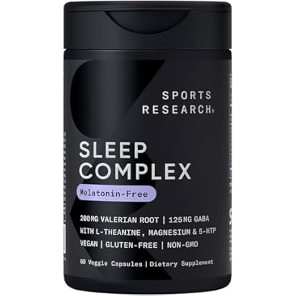 Sports Research® Sleep Complex- Melatonin-Free Vegan Capsules – with Valerian Root, GABA, L-Theanine, Magnesium & 5-HTP – 30 Servings