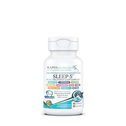 KAPPA NUTRITION Sleep 5, Sleep Aid, 5mg of Melatonin, 60-Day Supply, Non-Habit Forming Vegan Capsules Natural Ingredients for Easier Bedtime, Herbal Supplement, Valerian Root, Chamomile Non-GMO