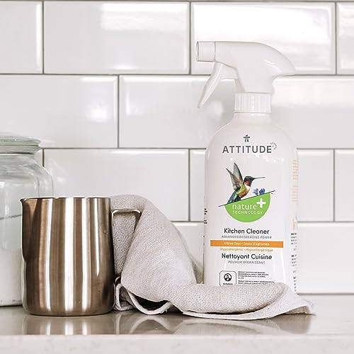 ATTITUDE Kitchen Cleaner Spray, EWG Verified, Powerful Degreaser, Cuts Grease & Grime, Plant-Based & Vegan, Citrus Zest Scent, 27.1 Fl Oz