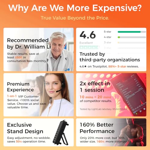 Say Goodbye To Expensive Spa: Saving numerous time and money to regain healthy mind & body at home. 10 minutes of irradiation with our red light therapy is equal to 20 minutes of other devices. An easy way to optimize collagen production and improve workout recovery without the effort. Light is as essential to cells as food is to people. With 30 days return policy, if you never try, you’ll never know!