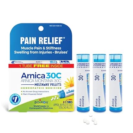 Boiron Arnica Montana 30C Homeopathic Medicine for Relief from Muscle Pain, Muscle Stiffness, Swelling from Injury, and Discoloration from Bruises – 3 Count (240 Pellets)