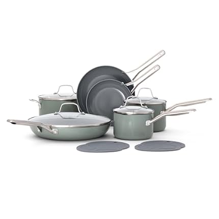 GreenPan Treviso 10 Piece Cookware Set, Non-Toxic PFAS-Free Stainless Steel Ceramic Nonstick Coating, Induction Suitable, Pots, Pans Lids, Sauté & Saucepans, Multi Clad, Dishwasher & Oven Safe