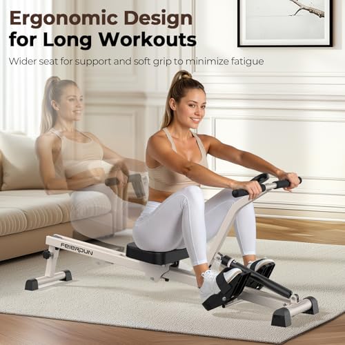 【Full Body Workout】 The Feierdun Rowing Machine offers a complete body workout that targets legs, glutes, back, arms, shoulders, and core with smooth, hydraulic resistance. The low-impact rowing motion engages your entire body for maximum results.