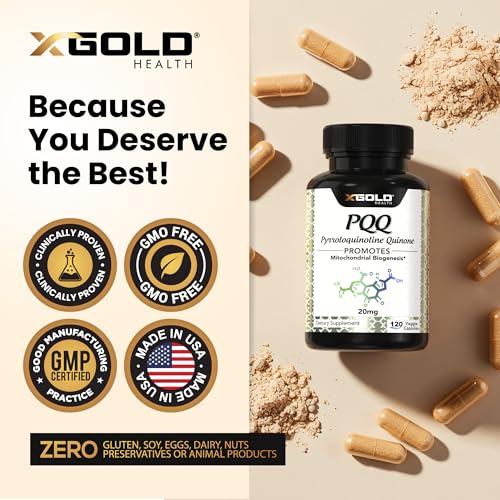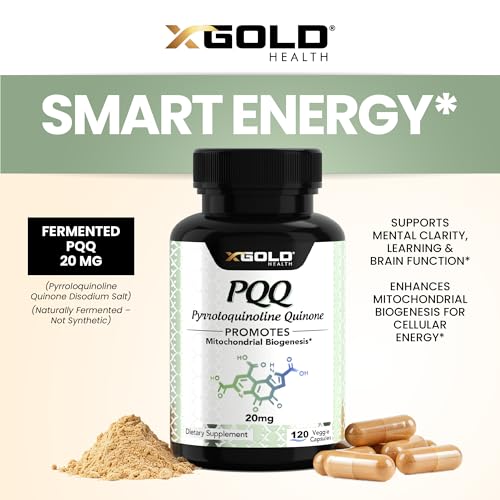 ✅ ESSENTIAL NUTRIENT: X Gold Health Fermented PQQ (Pyrroloquinoline Quinone) contains 20 mg per serving, just one vegetable capsule per day provides the essential recommended dose with the best ingredients. PQQ is a Multi-Functional Nutrient and Powerful Antioxidant. It has shown a wide range of benefits for the brain, heart and body, such as stimulating mitochondria biogenesis, production of nerve growth factor, and antioxidant activity.*