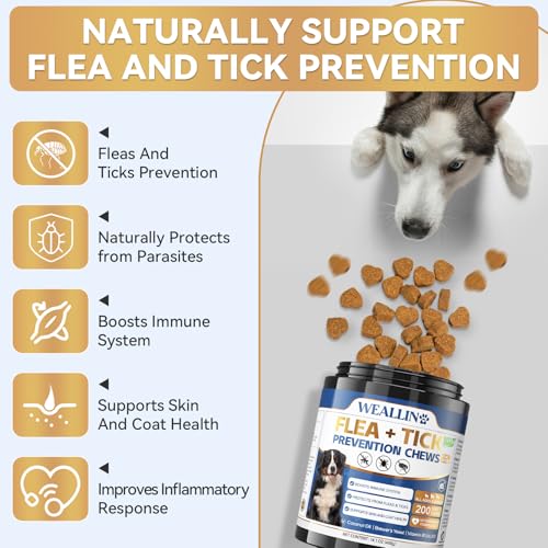 Flea and Tick Prevention for Dogs, 200 Soft Chews for Dog Fleas Ticks Treatment, Natural Dogs Oral Flea Chewables Support Supplement, Flea and Tick Chews for All Breeds & Sizes