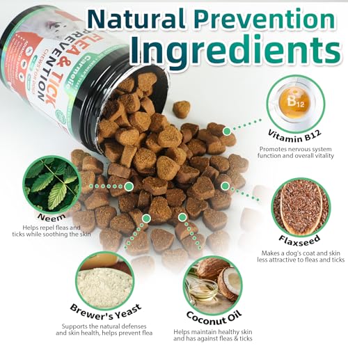 Flea and Tick Prevention for Dogs Chewables – 200 Soft Chews Natural Dog Flea and Tick Chewables, Oral Flea Supplement for Dogs, Puppy Flea Support – All Breeds & Ages – Chicken Flavor