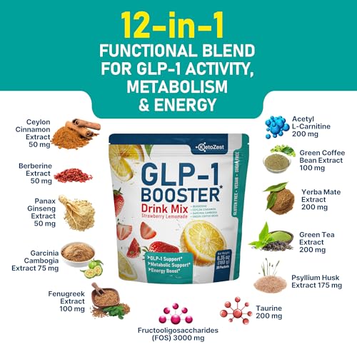 Supports Natural GLP-1 Activity: KetoZest GLP-1 Booster Drink Mix is formulated with Berberine, Garcinia Cambogia, and Ceylon Cinnamon to help support the body’s natural GLP-1 activity. This functional plant-based blend promotes appetite regulation, helps reduce cravings, and supports more balanced eating patterns. It is ideal for individuals working toward sustainable weight loss goals and long-term wellness habits.