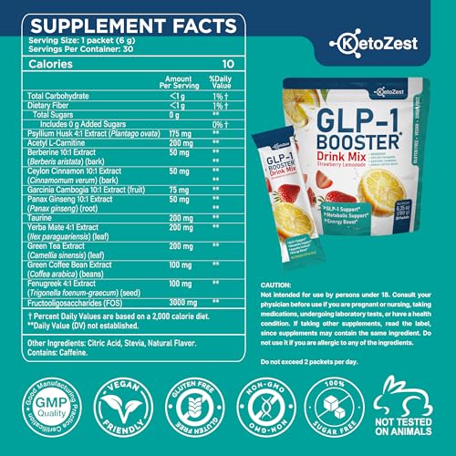 Convenient Packets for On-the-Go Wellness: KetoZest GLP-1 Booster Drink Mix for Women and Men comes in 30 single-serve packets that are easy to mix with water for a refreshing strawberry lemonade flavor. Each serving is sugar-free, gluten-free, and vegan, making it ideal for travel, work, or active lifestyles. These convenient powder drink mixes create refreshing daily drinks that support digestion, energy, and metabolism as part of a consistent daily health routine.