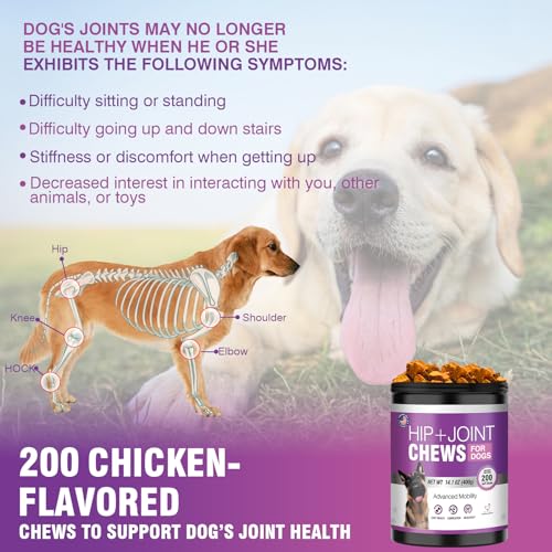 Glucosamine for Dogs 200pcs Joint Support Supplement Dog Hip and Joint Chondroitin Chews Treats with MSM Hemp Dog Joint Pain Relief Mobility Supplements Chicken Flavor Fit All Large Small Medium Breed