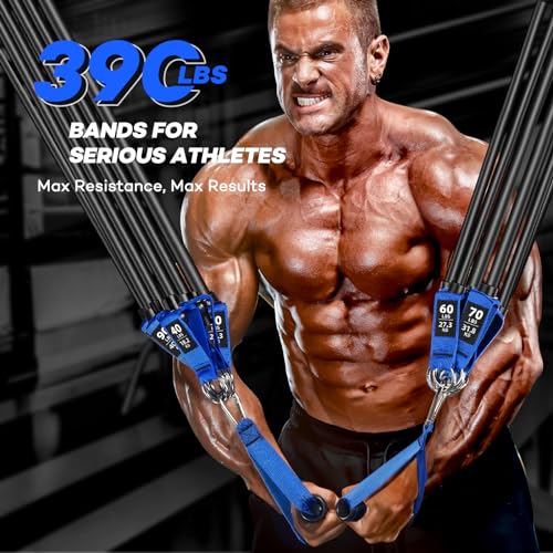 【6 Levels 390lbs Heavy Resistance Bands Set】With 6 different resistance levels(40 lbs, 50 lbs, 60 lbs, 70 lbs, 80 lbs ,90 lbs), You can freely combine our exercise bands according to your strength! Adjust 20 pounds to 310 pounds as you like, this set of high-quality resistance bands can meet your workout needs and give you a lot of room for improvement.