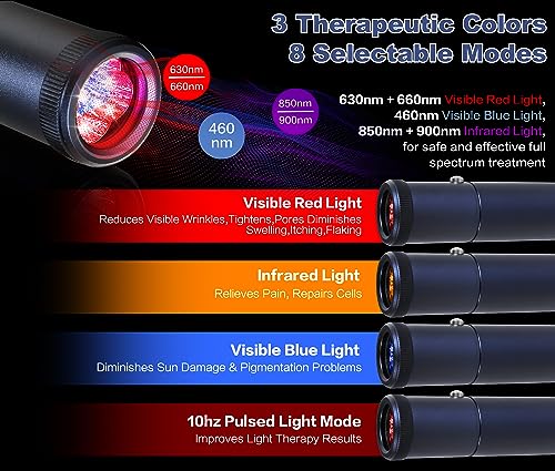 Infrared Red Light Therapy Device for Joints & Muscles Pain Relief, 460:630:660:850:900nm Cold Sore Canker Fever Treat, Portable Near Infrared Wand for Face & Body Mouth Nose Effective 2 in 1 Modes