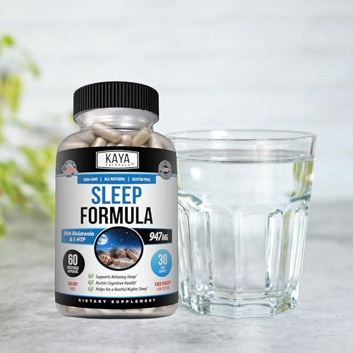 Kaya Naturals – Sleep Support Formula with Melatonin – Aid Support Vitamin Supplement – Sleep Stress and Mood Support – L-Tryptophan, Passion Flower, Ashwagandha and More – 60 Capsules (60 Count)
