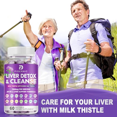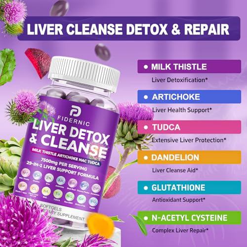 Liver Cleanse Detox & Repair – Herbal Liver Support Milk Thistle Supplement, 7500mg Strength Liver Health Support with Silymarin Artichoke Extract Dandelion Beet TUDCA Choline NAC, 60 Vegan Softgels