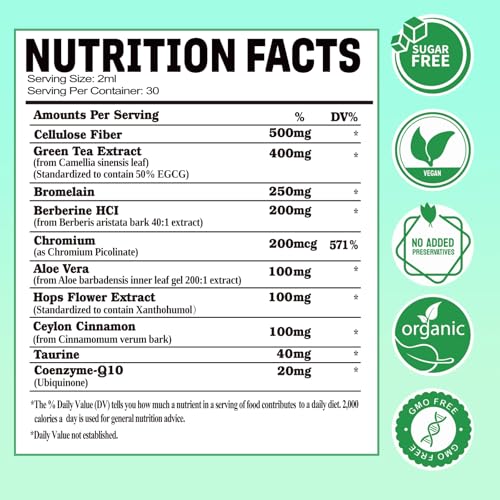Support Energy* and Immune*: Our GLP-1 Drops are a dietary supplement with a blend of Cellulose Fiber & Berberine HCI, Green Tea Extract, Bromelain, Chromium, supporting energy* and immune* health. By aiding in the utilization of nutrients, GLP boosts efficient energy* production, which support a healthy* and vibrant lifestyle