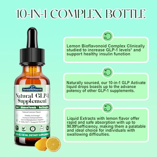 Easy-to-use Liquid Form for Maximum Absorption: Our liquid glp-1 daily supplement comes in a convenient liquid form, offering superior absorption compared to traditional capsules. Simply mix 2 droppers with water, smoothies, or take it sublingually instead of swallowing capsules, pills, or powders. Natural lemon flavor makes it a pleasure to take daily, while we utilize a unique liposomal technology for maximum absorption of GLP. Each 60ml bottle provides a 30-day supply, making it a reliable choice for long-term use