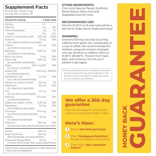 Pureboost Clean Energy Booster, Refreshing Energy Drink Mix with B12 Vitamins, Electrolytes, Antioxidants, Sugar-Free with No Sucralose (Combo Pack, 30 Count)