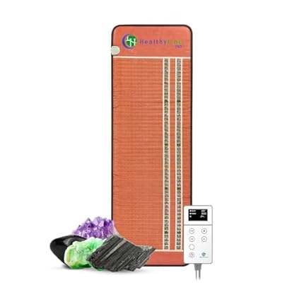 РЕМF Far Infrared Heating Pad – Professional Biomat for Pain Relief and Healing – Pulsed Electromagnetic Field Therapy – Full Body Mat Auto Shut Off – Amethyst, Tourmaline and Obsidian Gemstones