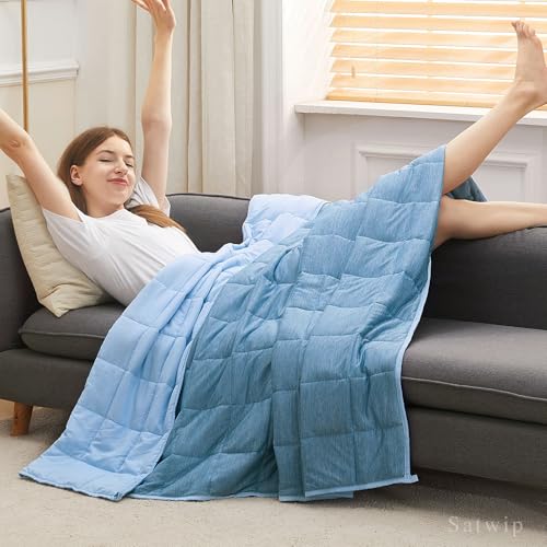Satwip Cooling Weighted Blanket Queen Size 15 lbs Cool Moire Jersey Bed Blanket for Hot Sleeper with Soft Breathable Sanded, 60 x 80 inches, Blue