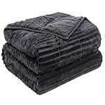 Sherpa Fleece Adult Weighted Blanket with Ribbed Stripes, 15 Pounds Dual Sided Soft Plush Blanket for Couch Bed Sofa, Heavy Thick Blankets with Ceramic Beads Great for Sleep, Dark Grey, 48″ x 72″