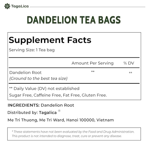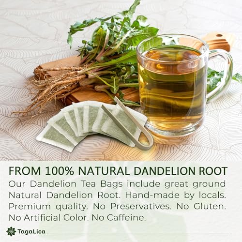 Tagalica, Premium 135 Dandelion Root Tea Bags, 100% Natural & Pure from Dandelion Root, Eco-Conscious Tea Bags, Herbal Tea. No Sugar, No Caffeine, No Gluten, Vegan