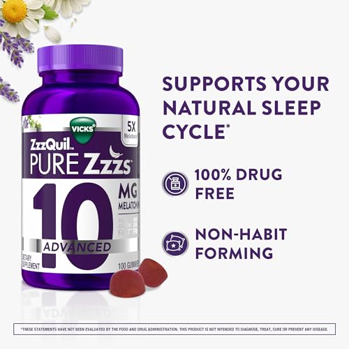 100% DRUG-FREE SLEEP AID: ZzzQuil PURE Zzzs Advanced Melatonin 10mg gummies are 100% drug-free.