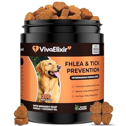 Natural Flea and Tick Prevention for Dogs – 200 Tasty Soft Chews – Dog Flea and Tick Treatment & Oral Flea Pills – All-Natural Flea, Tick & Mosquito Defense – Skin & Coat Health – Made in USA